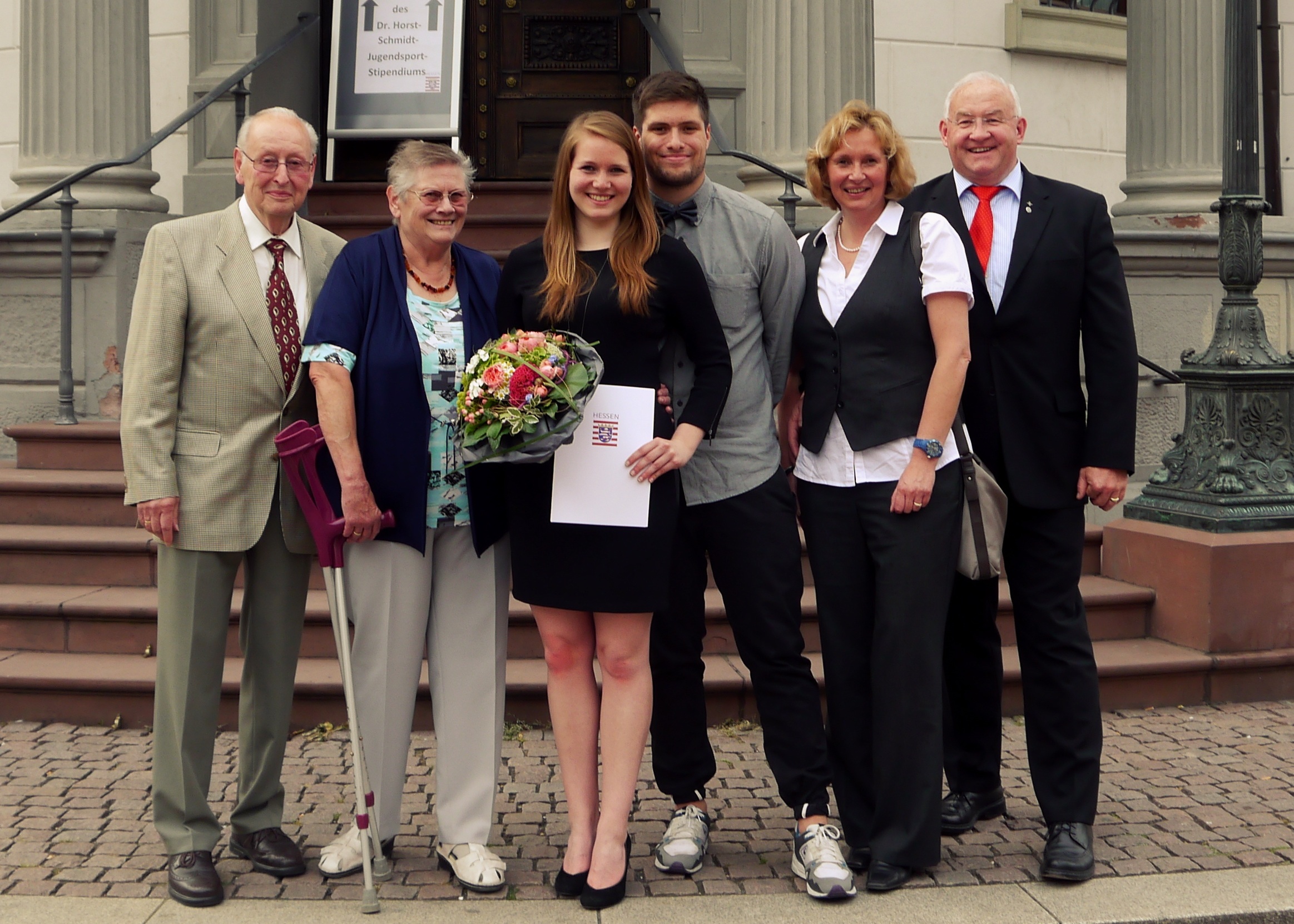 Unsere Nachwuchstrainerin Sabrina Hommel gehört zu den fünf Preisträger_innen 2015, die für ihr herausragendes ehrenamtliches Engagement innerhalb der Sportjugend Hessen mit dem Dr. Horst-Schmidt-Stipendium gekürt wurden. Überreicht wurde der Preis am 10.6.2015 vom hessischen Inneminister Peter Beuth im hessischen Landtag.