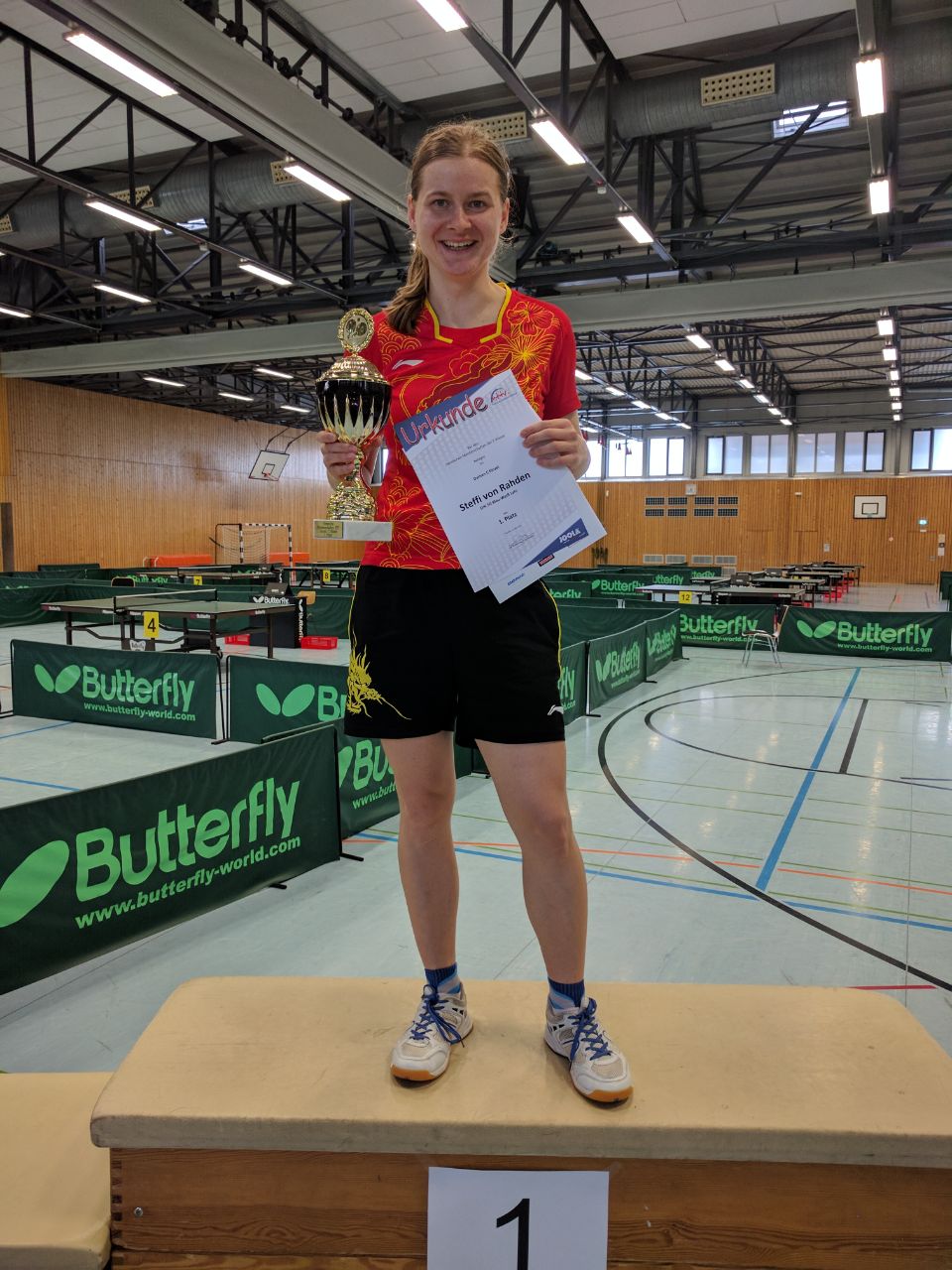 Steffi von Rahden, unser Neuzugang für die Damen I, wird nach mehreren 5-Satz-Krimis Hessische Meisterin bei den Damen C und qualifiziert sich zu den Deutschen Meisterschaften.