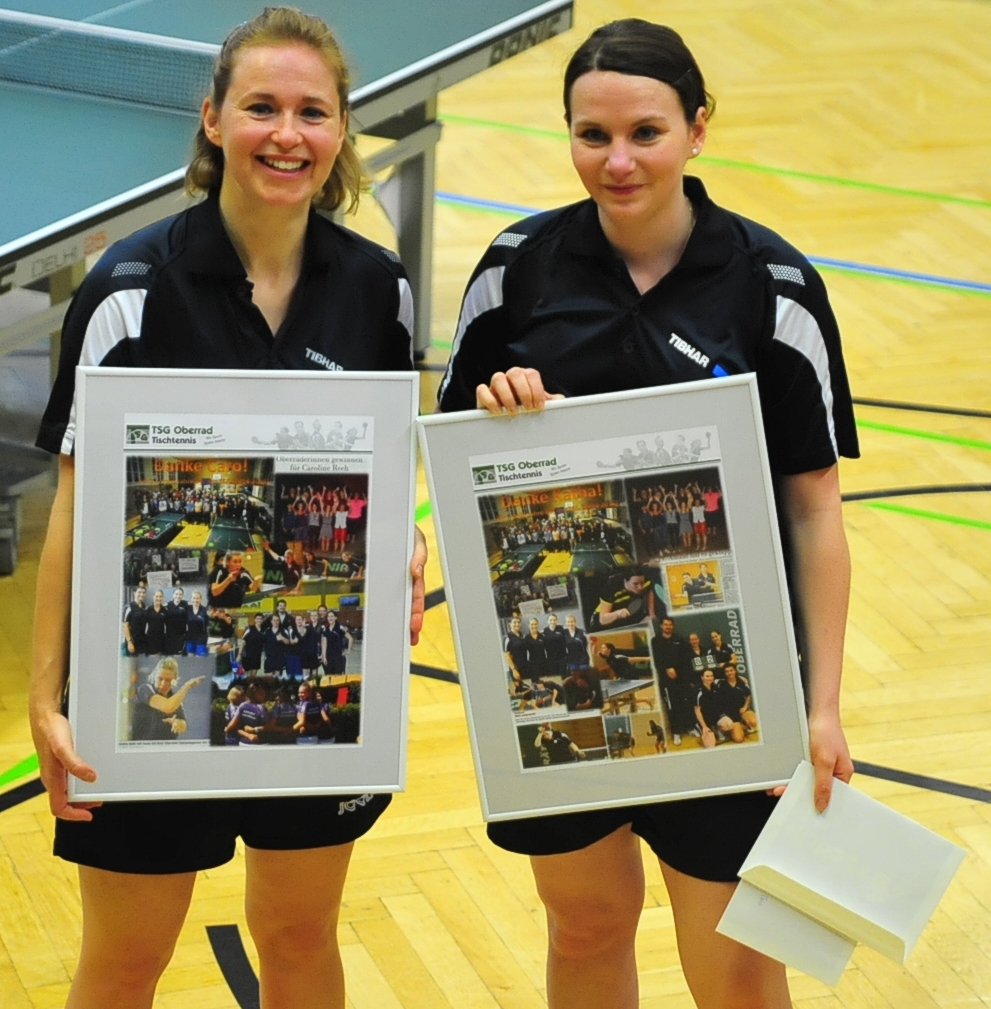 Erfreulicherweise konnte die 1.Damen in der Saison als Aufsteiger relativ ungefährdet den Klassenerhalt meistern und schlägt in der Saison 2016/17 weiterhin in der Oberliga auf. Allerdings wird sich zur neuen Saison das Gesicht der Mannschaft an zwei Positionen verändern. Caroline Reeh und Katharina Schott bestritten am 24.4. gegen Auedamm Kassel das vorerst letzte Spiel für die TSG Oberrad (8:1). Katha arbeitet und lebt inzwischen in München und wird aufgrund der großen Entfernung nicht weiter pendeln und deshalb in den Süden wechseln. Die Hintertür bleibt immer offen, sollte der Weg mal zurück ins Rhein-Main-Gebiet führen. Caro muss ihre aktive Karriere leider aufgrund einer Verletzung beenden, bleibt der TSG aber als Mitglied erhalten und will sich auch weiterhin um Sponsoring für die Tischtennisabteilung kümmern. Wir möchten beiden ganz herzlich für ihr ehrenamtliches Engagement im Verein und ihre Erfolge im TSG-Trikot danken! Beide waren maßgeblich am Aufstieg in die Oberliga und dem Klassenerhalt beteiligt – Caro auch schon am Aufstieg in die Hessenliga. Die beiden legendären Relegationsrunden in Nordenstadt und Langen sind noch der ganzen Abteilung in guter Erinnerung.