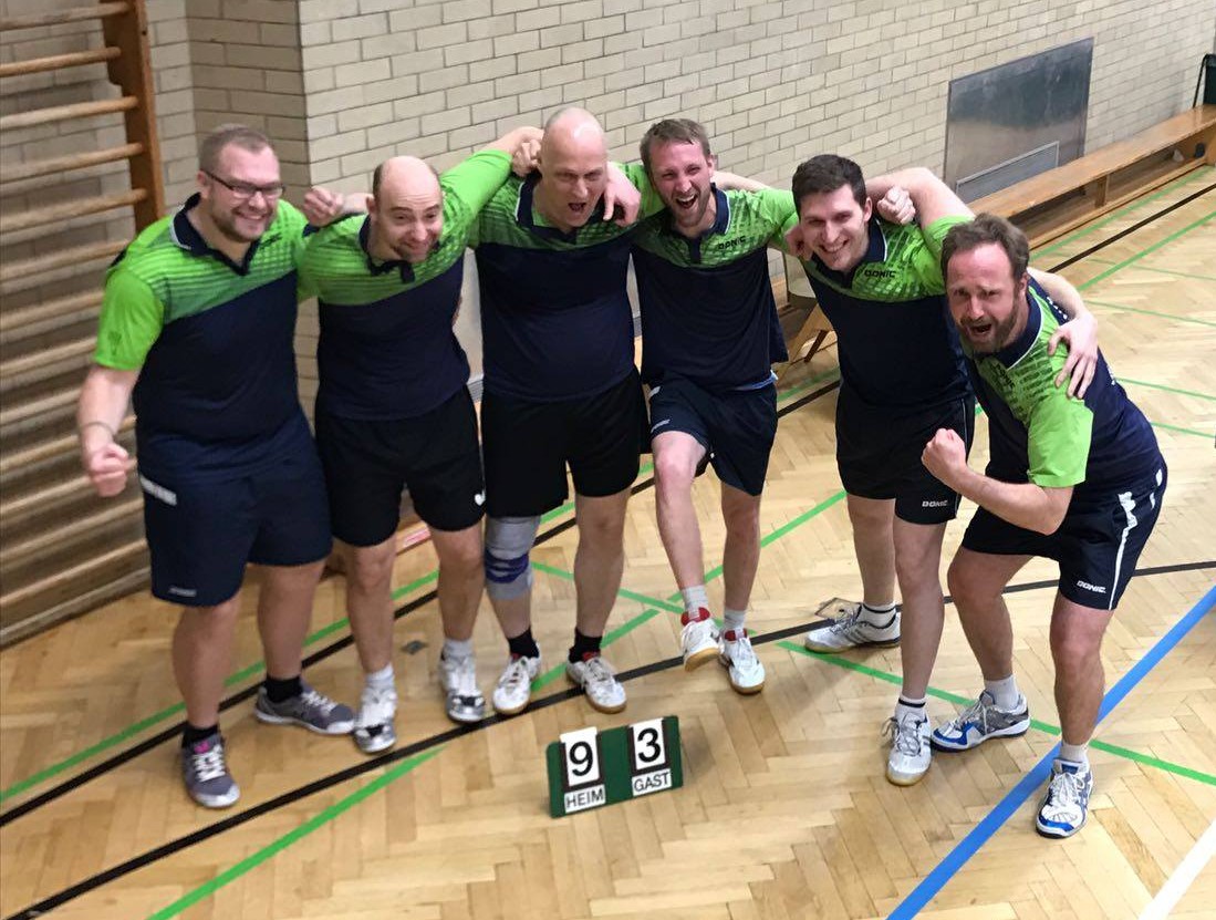 Link zur aktuellen Tabelle. Hier bleibt es übrigens auf den beiden Plätzen hinter uns spannend: Münster und Langen treffen in ihrem nächsten und damit letzten Spiel aufeinander. Langen genügt, nachdem Münster sein letztes Spiel durch eine falsche Doppelaufstellung mit 0:9 abgeben musste, ein 9:6 Sieg für den Relegationsplatz.