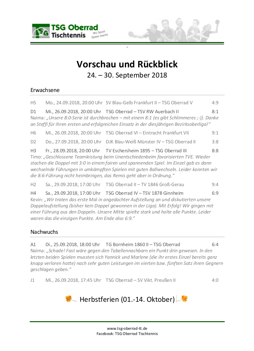 Wir blicken zurück auf die letzte Spielwoche und wünschen frohe Herbstferien!